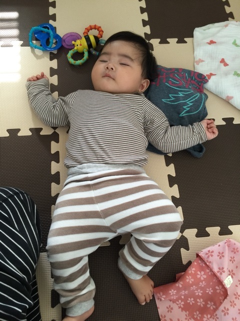 チャイルドシートでは、最初ちょっとぐずったけど、走っているうちに夢の世界へ