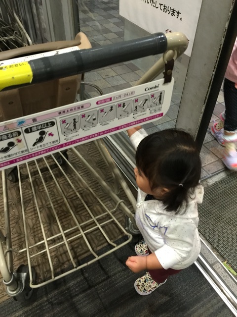 姫はお昼寝なしではしゃいで、パンやらリンゴやらの試食を食べまくって
