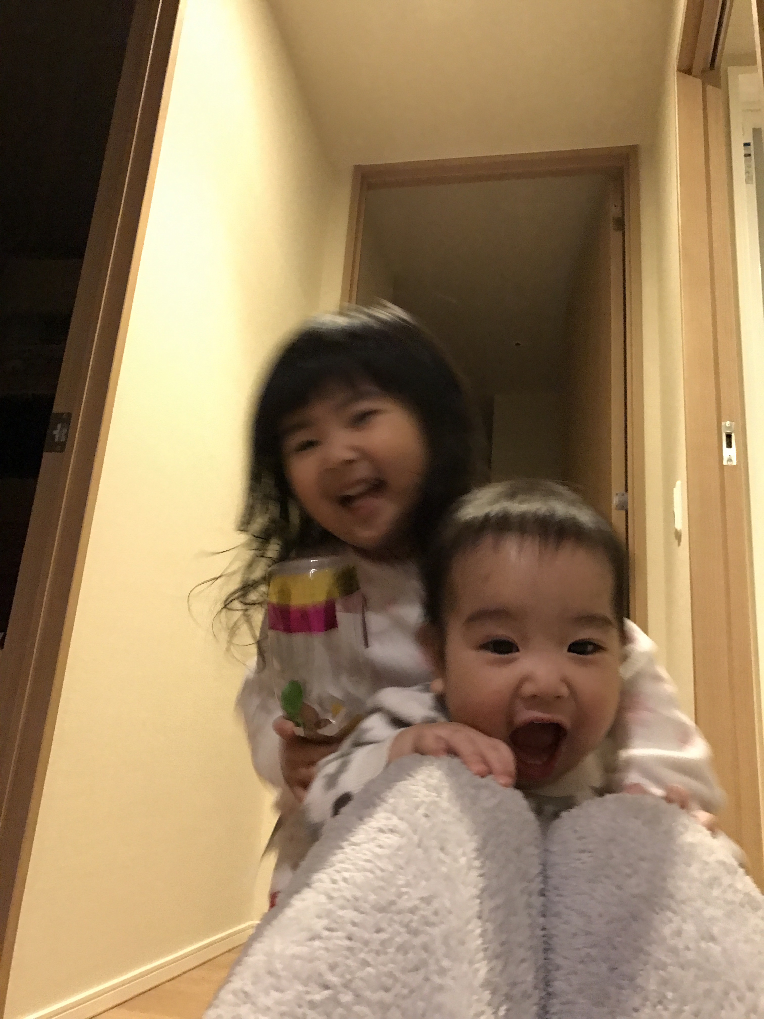 昨日は風呂上がりにイチゴとマハロと少し廊下で一緒になってはしゃいで遊びました。