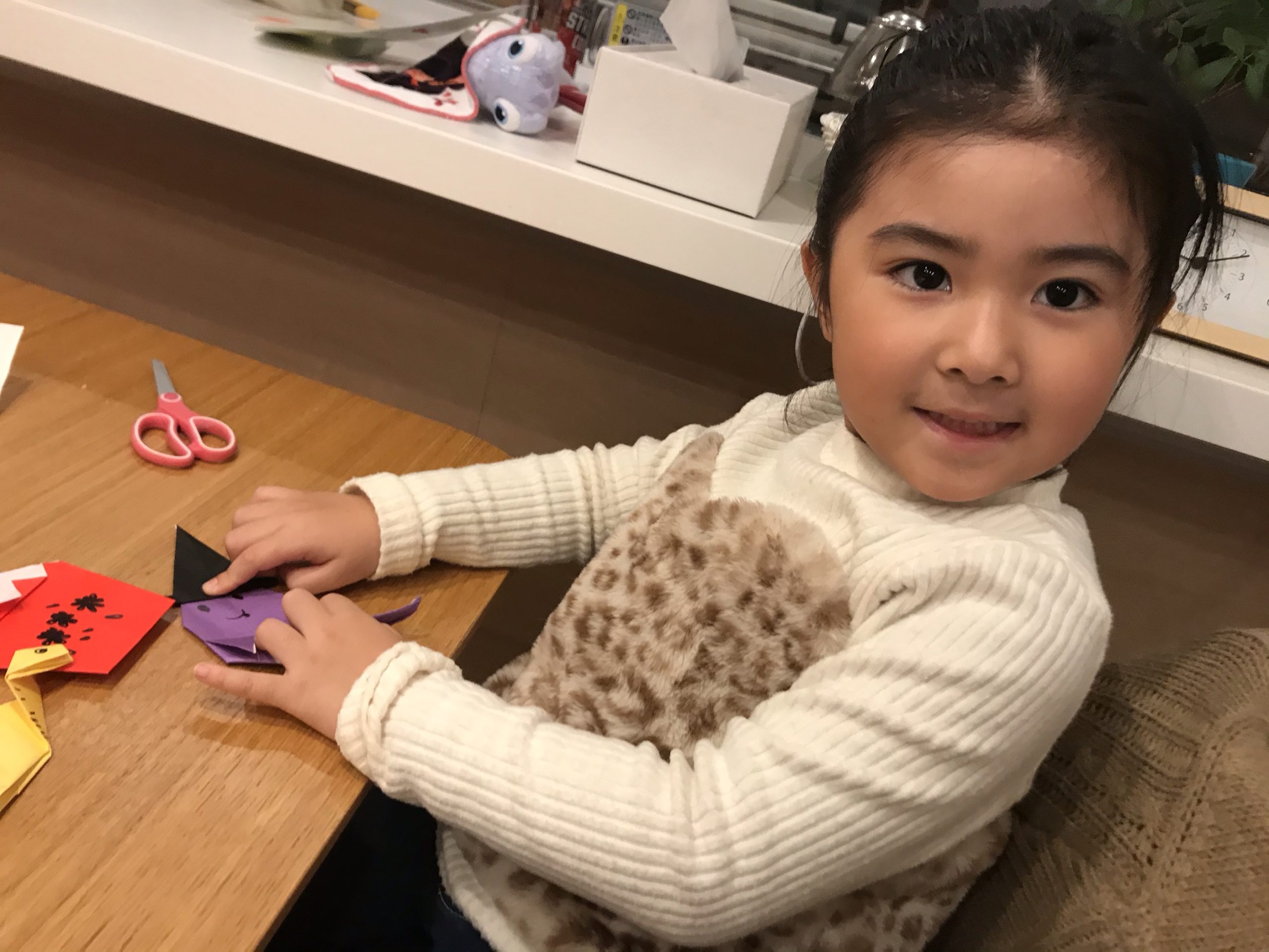 今日は折り紙がやりたい気分だったらしく、マハロはこの前買ってきた折り紙の本をみながら一緒に折り紙に熱中!