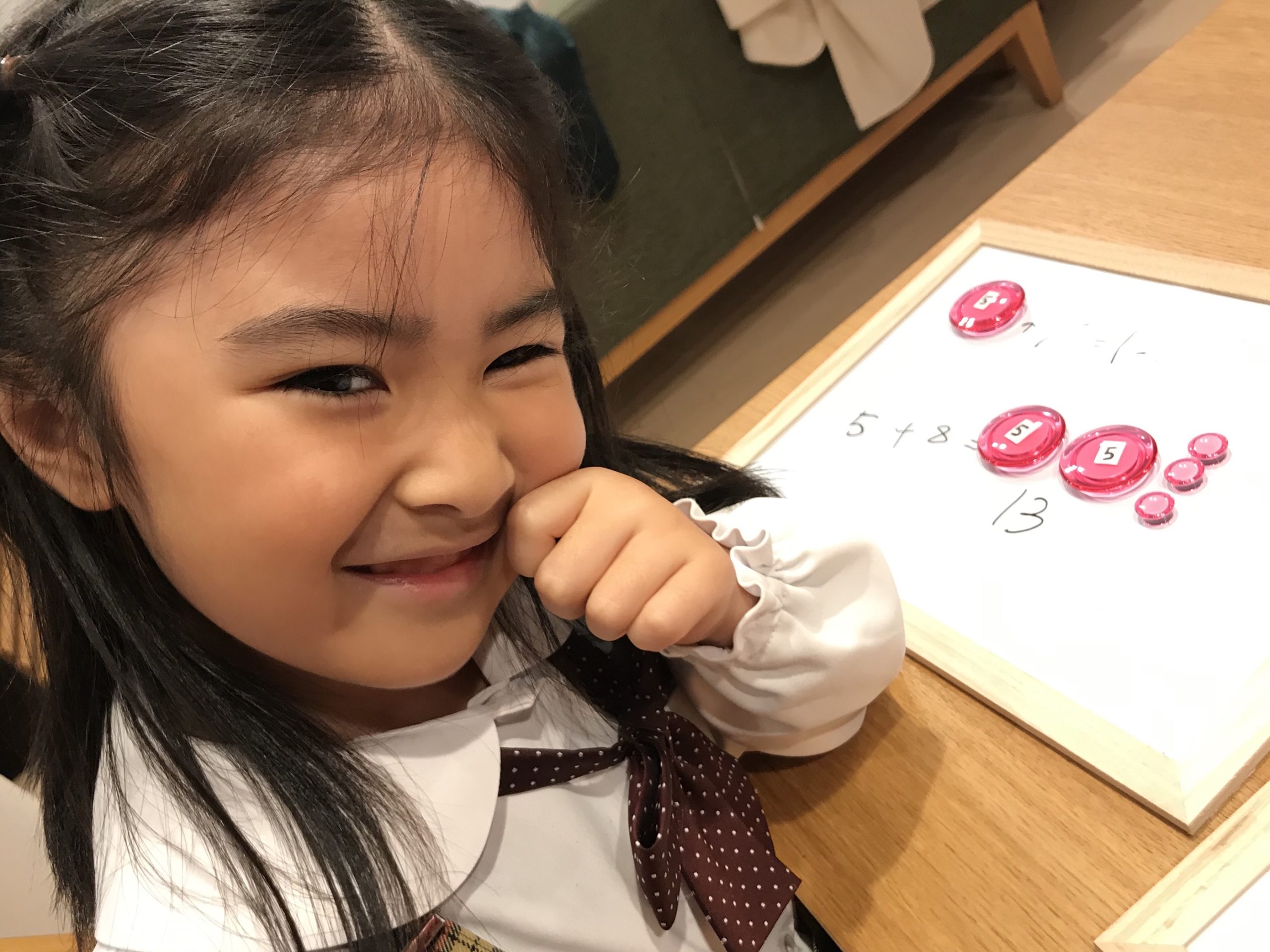 「あ~、それは・・・のちのち2桁の計算になったときに、つまづいちゃうパターンですね(笑)数字を5とか10とかの集合として、頭の中で組み立てれるようになると、いいですね!!」っと。
