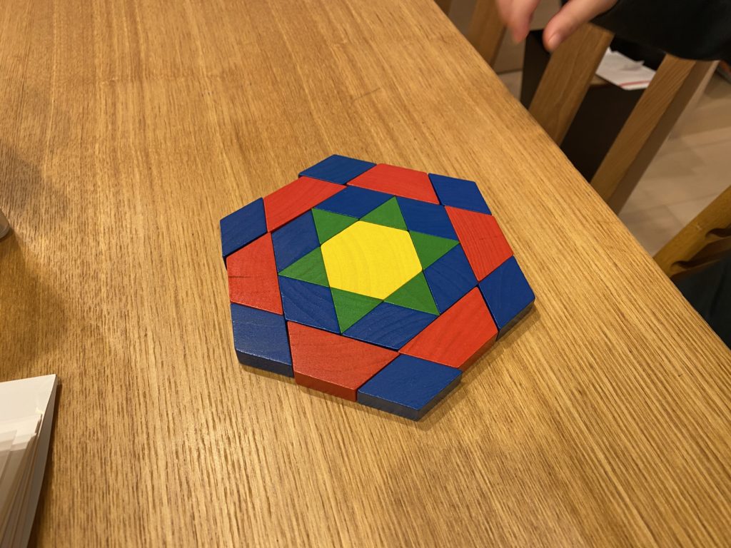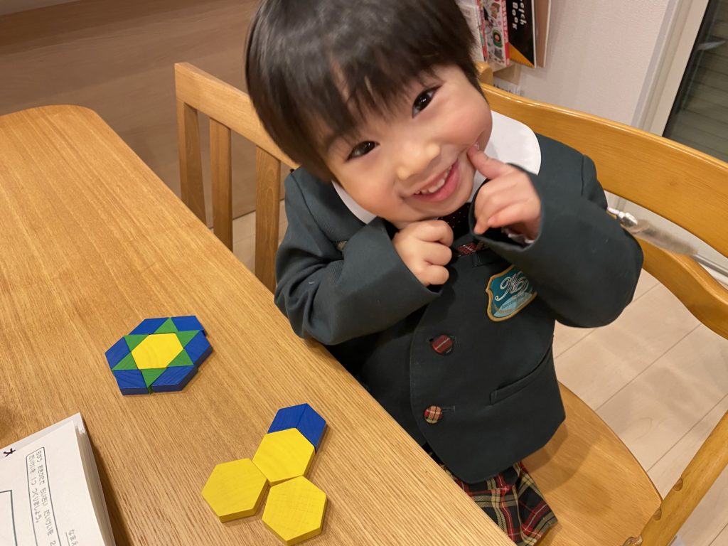 パターンブロックも好きなようで、もくもくと自由に作品をつくって遊んでいます。