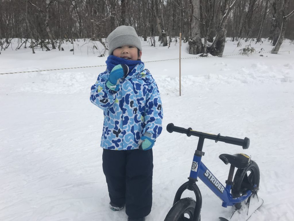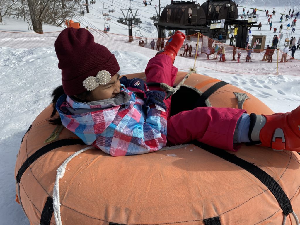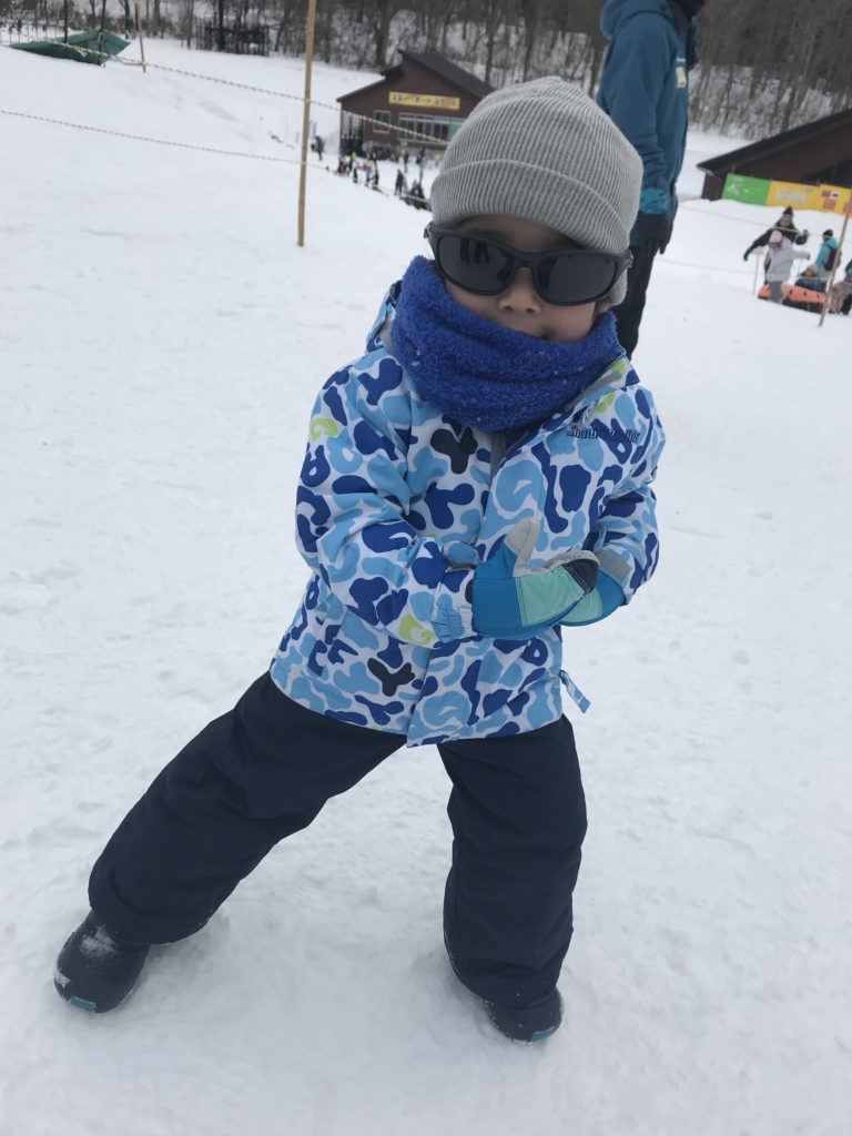 道中雪はなく、かなり不安だったけど、ゲレンデにはしっかり雪があり、キッズパークもそりに、チュービングに、雪遊びに、ストライダーもあり設備はばっちり!