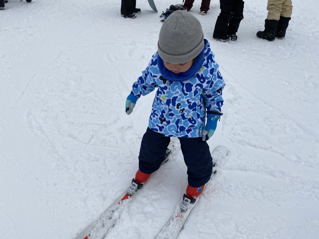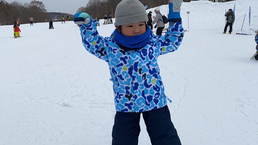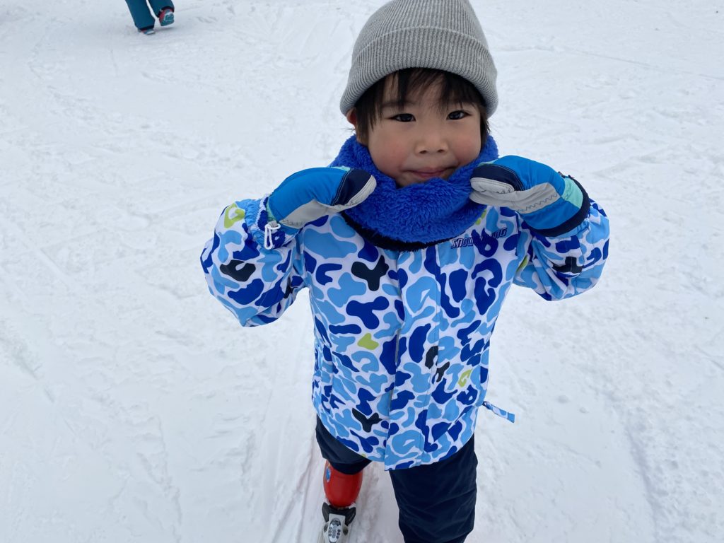 親同伴だったからほぼ私が指導していたようなものだったけど、怖がることなく、蟹さん歩きで登ったり、滑ってハの字で止まろうとしたり、頑張って少し滑れるようになりました。