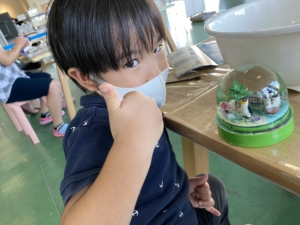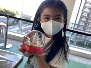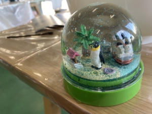 スノードームづくりやりたい!!っと二人が騒ぐので、自由につくらせてみたら、イチゴも結構器用にサクサク組み立ててて、見事な作品を作り上げた!