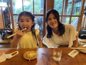 富士山は見えなかったけど、おいしい思い出のほうとうを二人と一緒に食べることができて大満足!