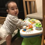 なんとか運動会までにハイハイで前に進めるようにならないかなぁっと思ってたんだが、まだ機嫌がいい時に片腕だけ前に一歩出すだけ。。。