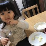 最初は食べやすいようにちぎったりした物をあげたりしてるけど、今日は最終的には、ごはんもおかずもそのまま手で食べていました(笑)