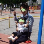 今日はお天気がよかったので、家族三人で公園デビューしてきました(笑)