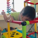 ・保育園の園庭にある木のアスレチックを1人で登って降